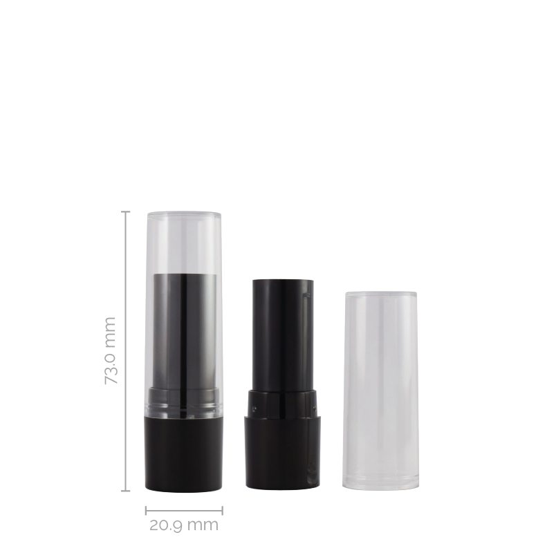 Short round lipstick base with 12.7mm diameter cup and two cap options